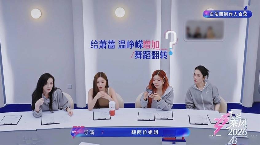 在制作人会议上,庄法和安崎想要给萧蔷和温峥嵘加上舞蹈翻转动作,萧蔷比较厉害,提议把两位姐姐放到彩带炮里发射出去,节目组说做不了, 被否定之后她们换了一个思路每个人在说唱里写一段自己的故事。